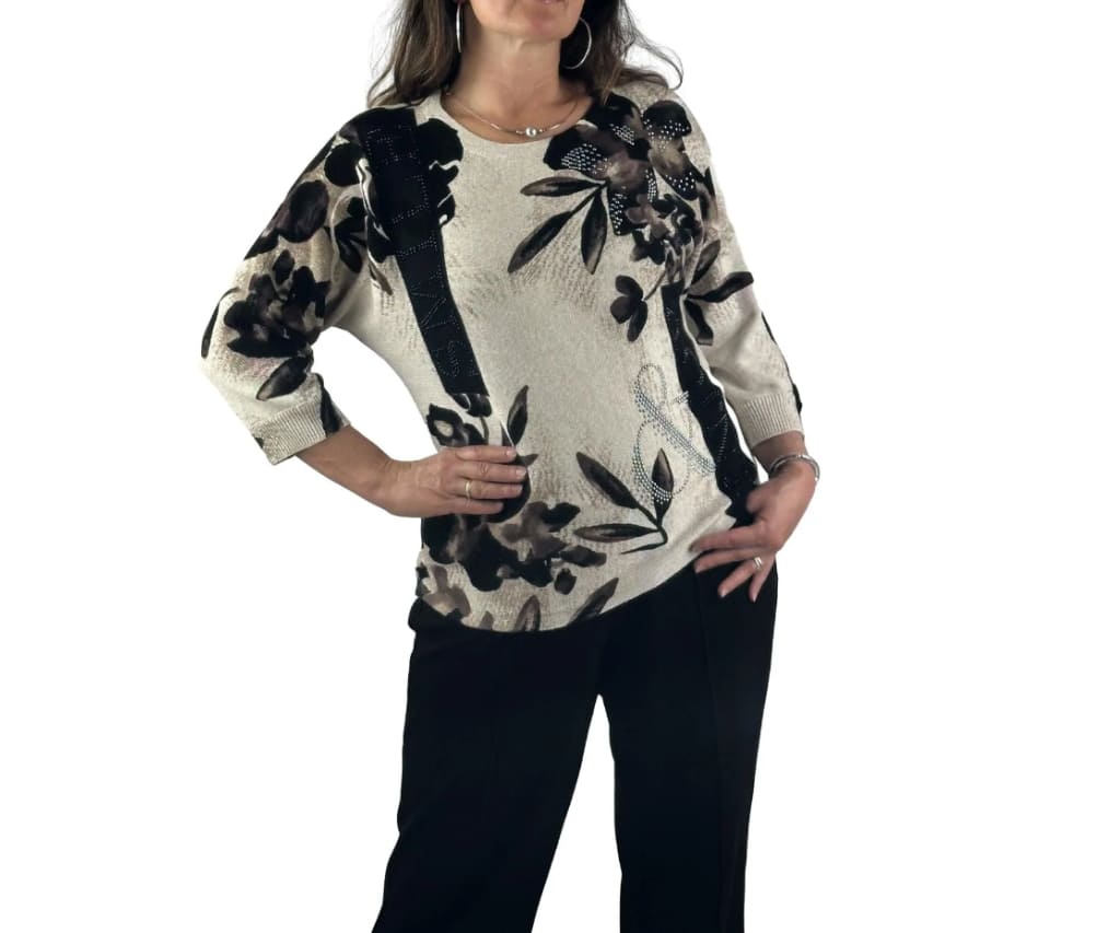 Véritable pilier du vestiaire décontracté, ce haut en viscose extensible se distingue par son motif marin intemporel et ses manches 3/4 ornées de fronces féminines.